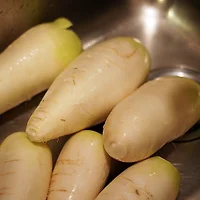 동치미의 무를 냉면에 사용하는 무절이처럼 잘 썰어 준비합니다.